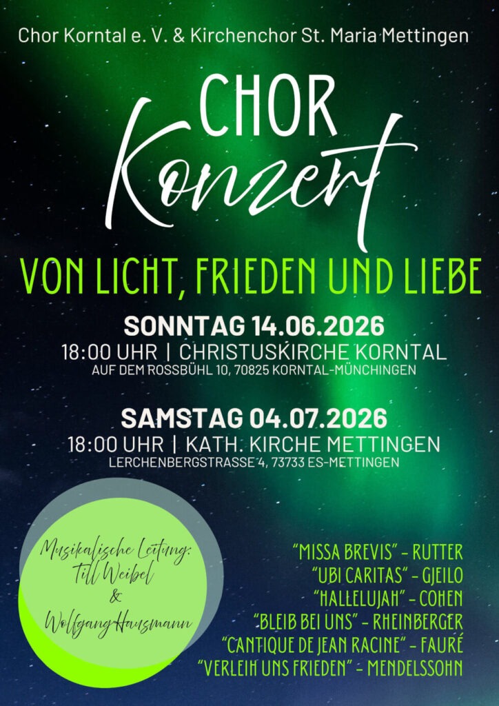 „Von Licht, Frieden und Liebe“ – – Chorkonzerte am 14.06. und 04.07.2026